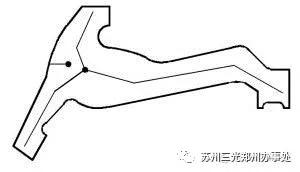 如图2所示,对于长的狭窄外形,先在此型孔内部进行释放应力的路径切割,再加工型孔外形。